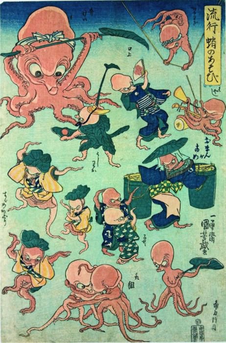Octopus illustrations by Japanese Artist Utagawa Kuniyoshi (1798-1861)